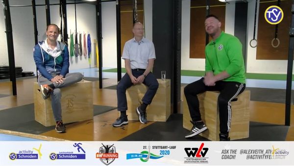 Gesprächsleiter Alexander Veith hieß in der 8. Ausgabe von "Ask the Coach" Gerald Znoyek, Abteilungsleiter der Leichtathleten des TSV Schmiden, und Alexander Hübner, Stuttgart-Lauf Orga-Chef, willkommen.